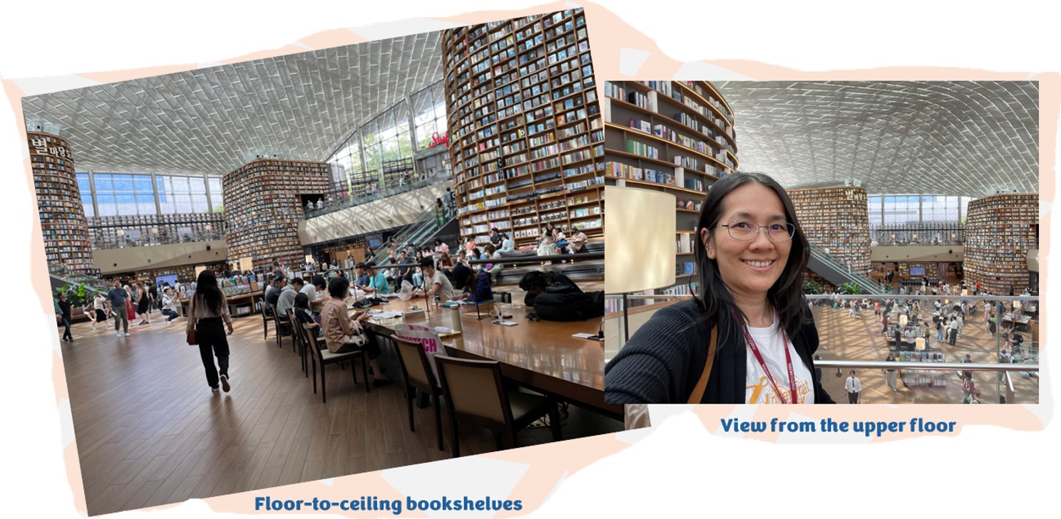 Wifey managed to get to the hotel at the Myeongdong area, right at the heart of Seoul City, where she checked in and dropped the luggage. And off she went to her own adventure. The first destination was the Starfield Library, which wasn’t too far away. Built inside the COEX Central Complex, the library features several 13m-tall bookshelfs, and holds more than 50,000 books. Since its opening in 2017, it had attracted tourists from all over the world to view its architectural design and unique 2-storeyed floor-to-ceiling bookshelfs. There are coffee shops and snack bars within the building, catering to those who need to burn the midnight oil.