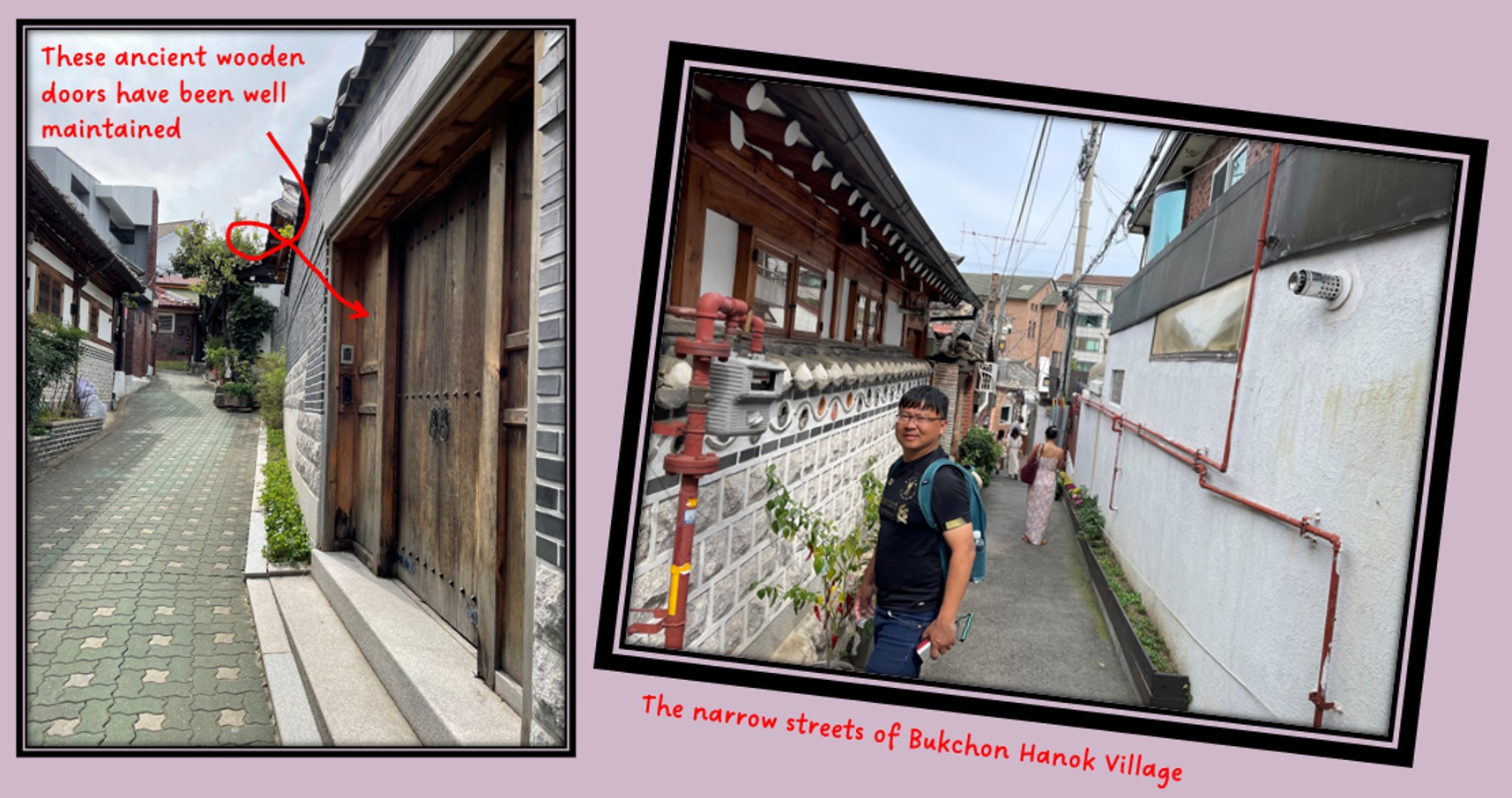 Apparently, this area received 6.4million visitors in the year 2024, making things a little bit uncomfortable for the residents that live here. Despite the rapid expansion of Seoul as a city, the charm of this area is that the old traditional buildings have been maintained, though upgraded with creature comforts like air conditioning and satellite TVs! Previously, there were artisans producing traditional arts and crafts, but we didn’t see them on this trip. Perhaps the trade is no longer profitable?