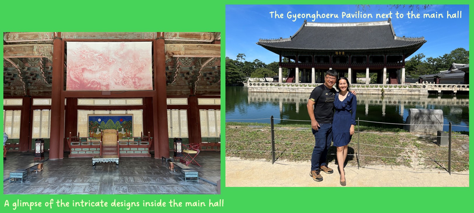 She managed to visit the Starfield Library on Day 0 and experienced some of the shopping streets around the Myeongdong area, which are located near our hotel. On Day 1 before I arrived, Wifey also managed to Deoksugung Palace, located to the west of where we stayed, before she slowly made her way to the meet-up point. We met up at around noon, and then we continued the rest of our adventures together.