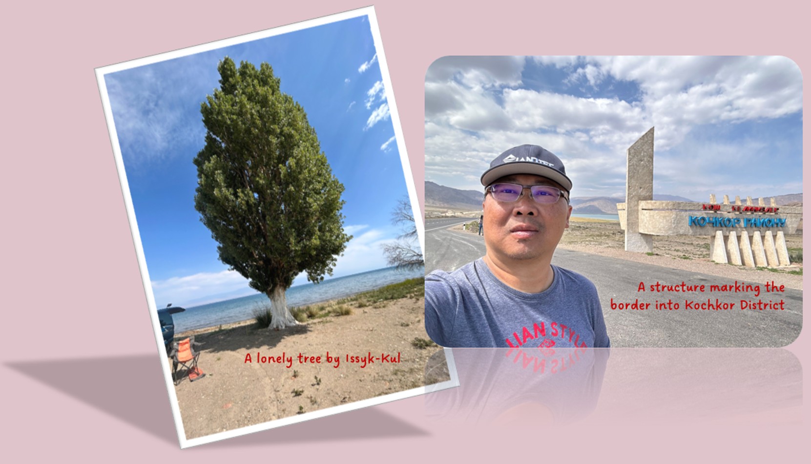 We did not stay long at Bokonbayevo, but along the way to Kochkor, we did stop for pictures (as usual). We found a little road that connected to another small beach along the Issyk-Kul, and there, several people had set up camps and had stayed there for the night. Later, as we drove along, we arrived at a border marking between the Issyk-Kul District and Kochkor District, with the Ordo Tokoy Reservoir just behind. We stopped to rest a bit by the roadside.