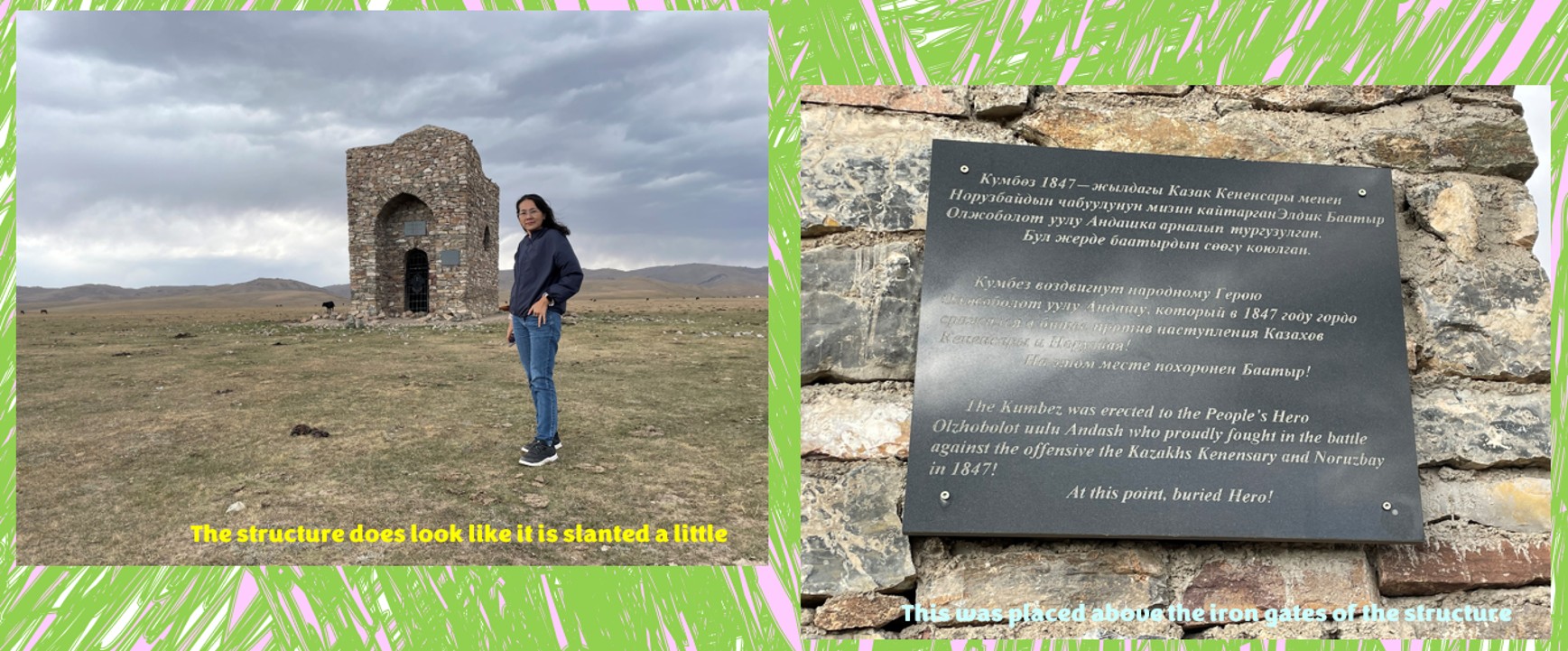 The day’s afternoon drive was seriously hectic – the journey into Kochkor village followed by a full round trip to Song Kul, a lake at the southwest of Issyk Kul. This was one of the most dangerous journeys, what with sharp curves and slick corners on very uneven roads (just paved with big stones), and in rainy weather, requiring full alertness and concentration. And in the end, after the hype about the place, the lake wasn’t anything to shout about. The saving grace, maybe, was that there was an old stone building in the middle of the fields, seemingly out of nowhere, but has huge historical significance.