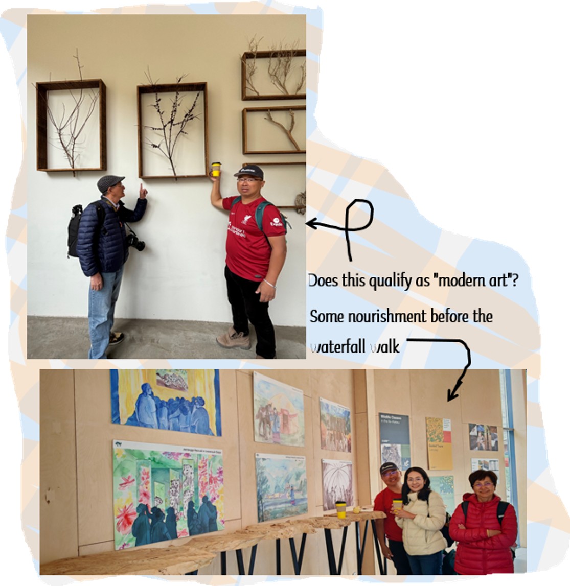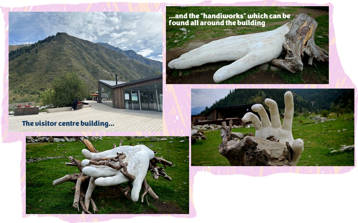 Our driver dropped us back at the Visitor Centre, where the crowd had visibly increased in number. Since it was our last full day in Kazakhstan, it was a good idea to finish off whatever food we brought from home and whatever tidbits we bought along the way. The Visitor Centre had several “art” pieces along its walls, and we stood around to admire them as we snacked.