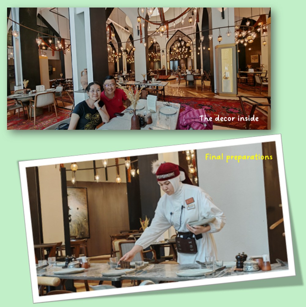 When we arrived at the restaurant, it was still closed.  We could see through the glass walls that the staff were preparing the place for the afternoon guests, and they had not opened their doors yet.  A small crowd soon gathered, and it was clear to us that the restaurant would be full at some point in the afternoon.  We were soon let in, and we took the opportunity to take photos with the décor of the place, even as some staff members were putting the finishing touches to the place.