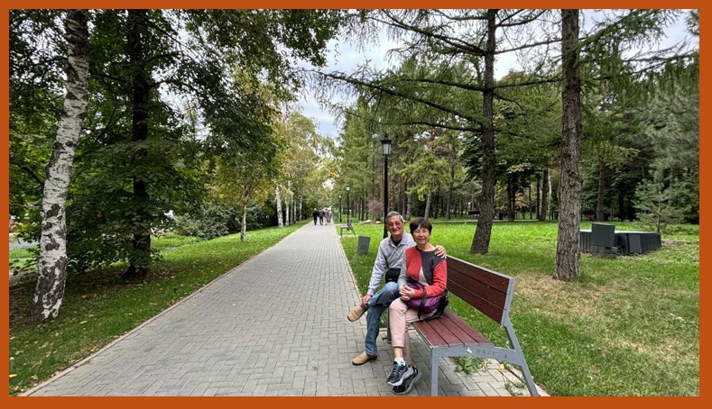 After that scrumptious meal, we got a cab to get us back to the hotel.  After putting away all the newly-bought stuff and taking a shower, we left our big luggage bags at the hotel reception for our last round-up of Almaty.  From the map, the Park of the Foundation of the First President looked to be within walking distance, and it was just behind opposite the tall Independence Monument which we visited on Day 2.