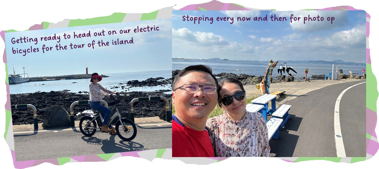 So, by now, we were quite settled after the excitement that started the trip. We were now more focused on getting the most out of the places we were gonna visit and this day threw up a different experience. It had been quite a while since Wifey and I did any cycling together, but Udo Island, just off the east coast of Jeju Island, permits very few motorised vehicles, hence electric bicycles were the way to go.