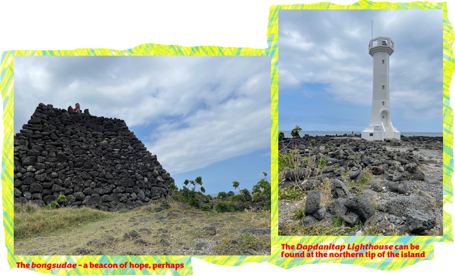 As we cycled on around the island, we came across some other monuments and buildings. One of them, the Dapdanitap Lighthouse, located at the northern most tip of the island. However it is locked and not open for the public. And standing next to it, is an ancient stone mound, used during the Joseon dynasty period as a communication beacon, known as bongsudae.