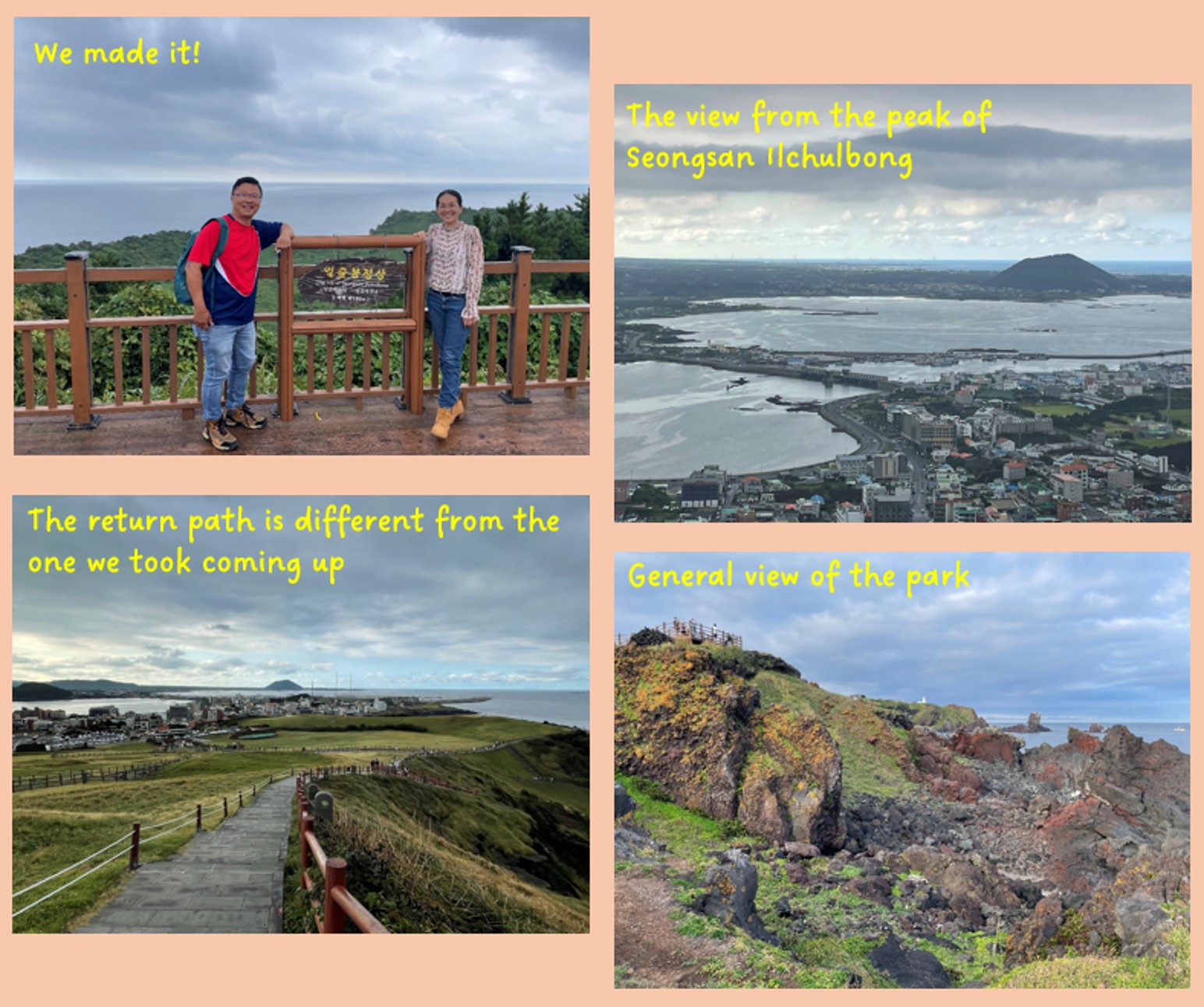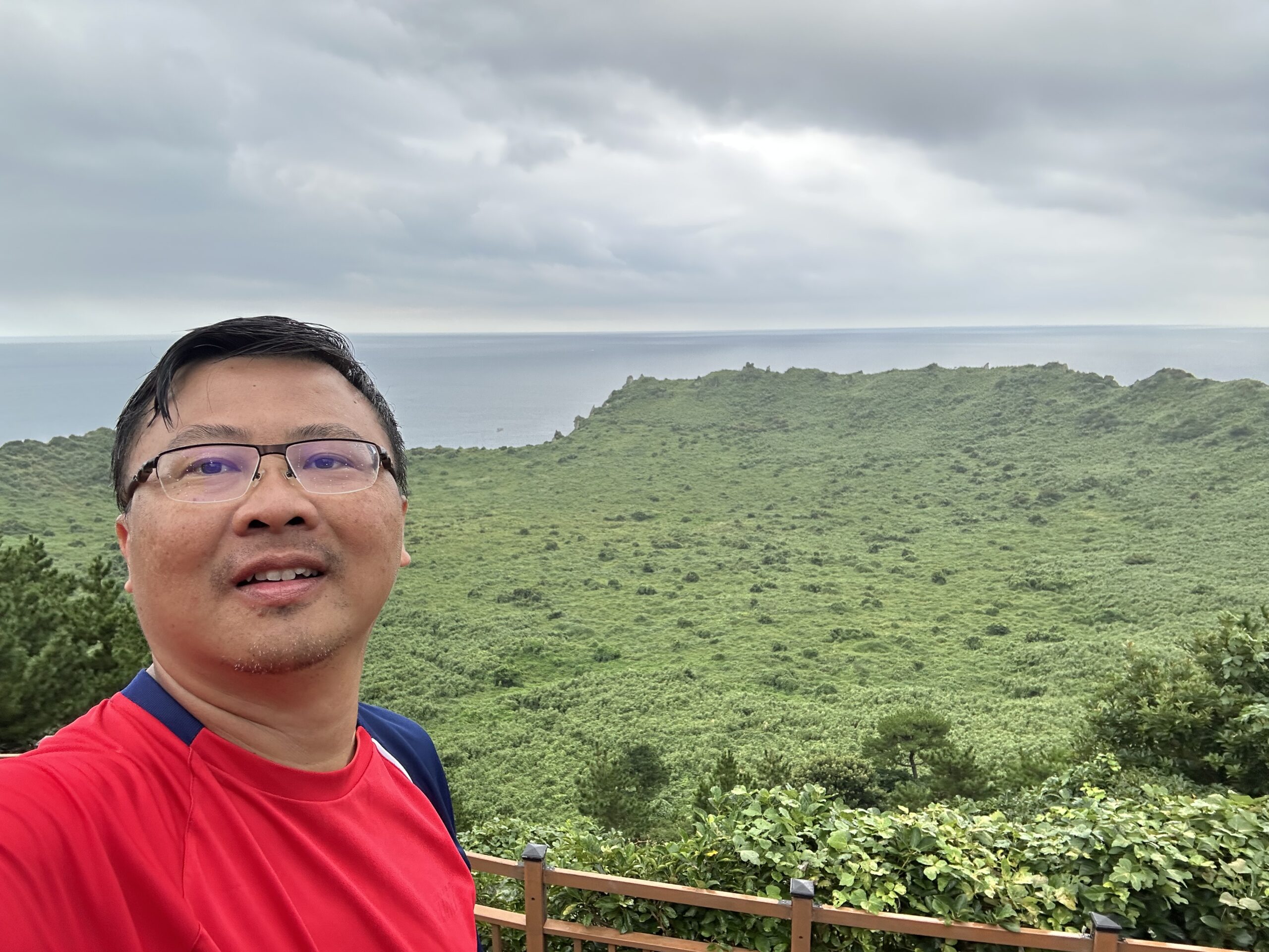 After returning to Jeju Island, we took a short drive through an isthmus connected to a dormant volcano known as Seongsan Ilchulbong Marine Provincial Park. It stopped erupting over 5,000 years ago, and is today one of the most visited sites in South Korea due to its natural beauty and often touted as the first place to see a new sunrise in the whole of South Korea. Wifey and I made the short trek to the top, from where we could view the bay area of eastern Jeju Island.