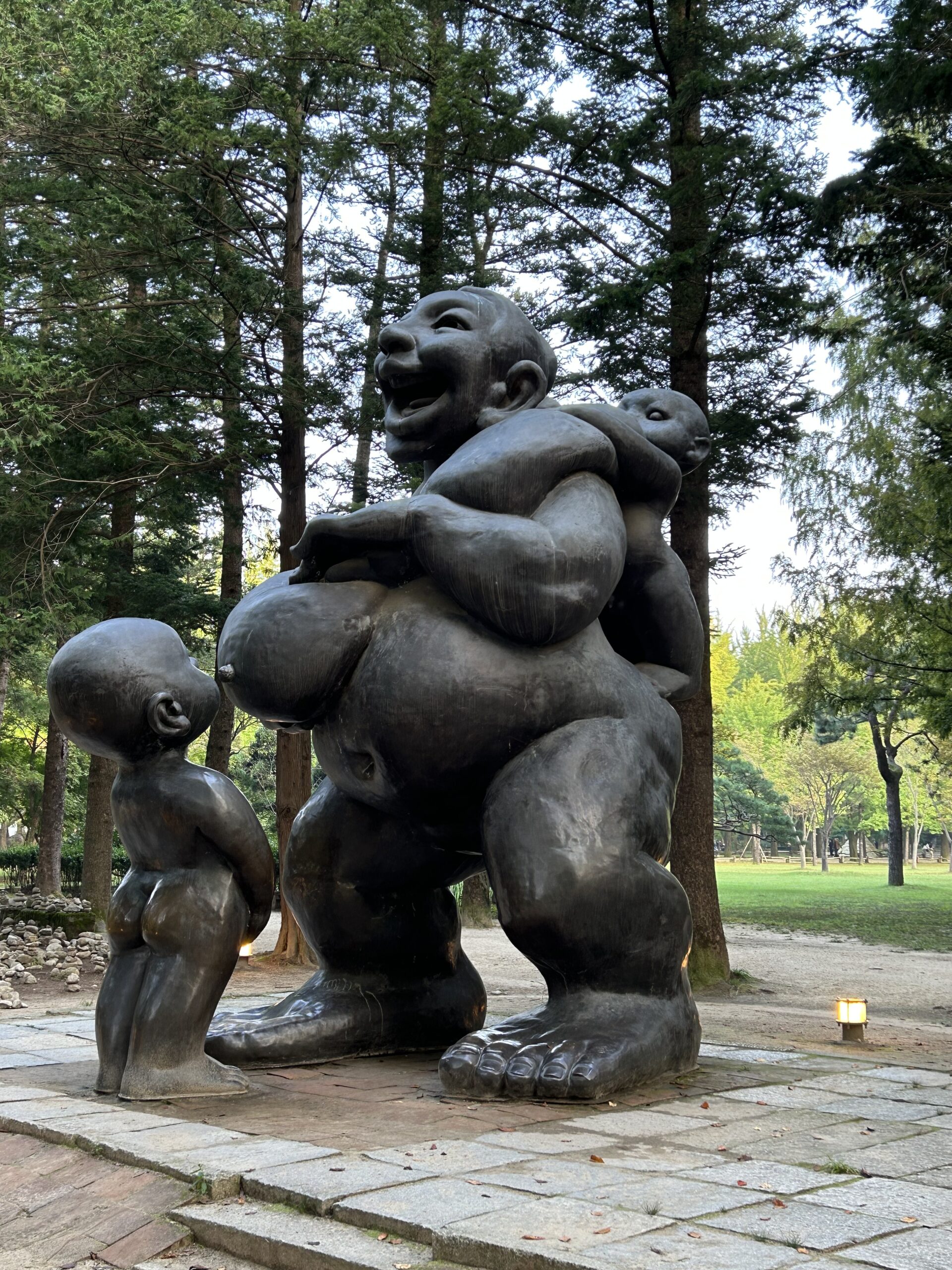 There are other things referencing the drama, but maybe it seems like I have been promoting the drama too much, so I will move on… There are, of course, other sculptures and buildings featured on the island that had nothing to do with the drama.  One of them is the very unique “Mother and Child” sculpture (Janggang and Hwangha Statues), created by the world class artist Yu Qing Cheng.  The “mother” depicts nature and the earth while her enlarged breasts represent China’s two primary rivers, the Yangtze and the Yellow Rivers.
